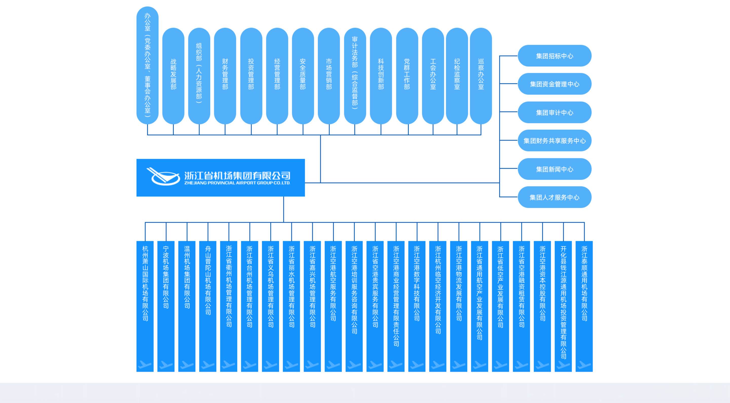 浙江省機(jī)場(chǎng)集團(tuán)有限公司是省級(jí)綜合交通投資、建設(shè)、運(yùn)營(yíng)和管理平臺(tái),根據(jù)省委、省政府關(guān)于整合全省機(jī)場(chǎng)資源、搭建航空大平臺(tái)的決策部署,2017年11月17日揭牌成立,時(shí)任浙江省委書(shū)記車俊、省長(zhǎng)袁家軍共同揭牌。集團(tuán)注冊(cè)資本金100億元,下轄杭州機(jī)場(chǎng)、寧波機(jī)場(chǎng)、溫州機(jī)場(chǎng)、舟山機(jī)場(chǎng),托管衢州機(jī)場(chǎng)、臺(tái)州機(jī)場(chǎng)、義烏機(jī)場(chǎng)、建德千島湖通用機(jī)場(chǎng)等。